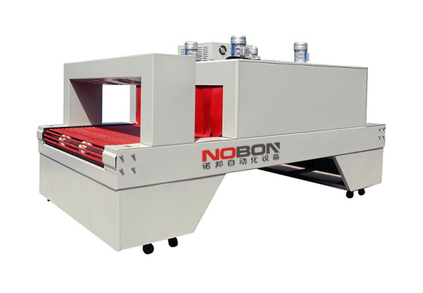 一段開放式:這個(gè)典型的實(shí)例就是托盤的收縮包裝,先將薄膜制成方底大袋,再將大袋自上而下套在堆疊商品托盤上,然后進(jìn)行熱收縮。將裝好產(chǎn)品的托盤放在輸送帶上,套上收縮薄膜袋;由輸送帶送入熱收縮通道,通過熱收縮通道后即完成收縮包裝。其技術(shù)的主要特點(diǎn)就是產(chǎn)品可以以一定數(shù)量為單位牢固地捆包起來,在運(yùn)輸過程中不會松散,并可以露天堆放。